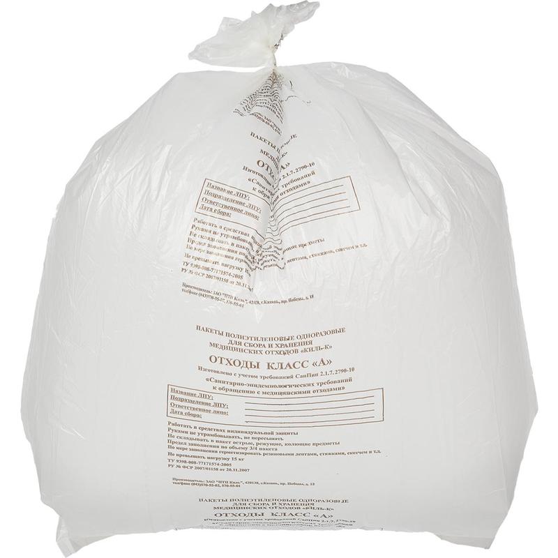 Пакет для утилизации медицинских отходов, 14 мкр, 120 л., 700*1100 мм. (класс А) 50 шт. рулон